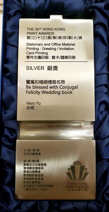 嫿MARY YU 設計的"鸞鳳和鳴"時尚結婚簽名冊獲得了銀獎